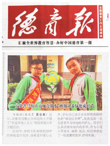 该报分别在头版刊登了《千名小小家评选让孩子找到闪光点》、《让文明规范之风吹遍校园》、《班级认养认养绿地成时尚》等活动,彰显师范附小鼓励学生特长、多元发展取得的成效。(通讯员 夏业荣)
