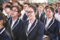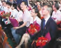 “毕业宣誓”将毕业典礼推向高潮。在激昂的音乐声中,同学们逐个从郭惠宇校长手中接过毕业纪念卡,经过毕业门走出会场。毕业门两旁,是手持鲜花的教师,他们目送学生离去。许多学生依依不舍地与教师握手、拥抱,表达这份深深的师生情。